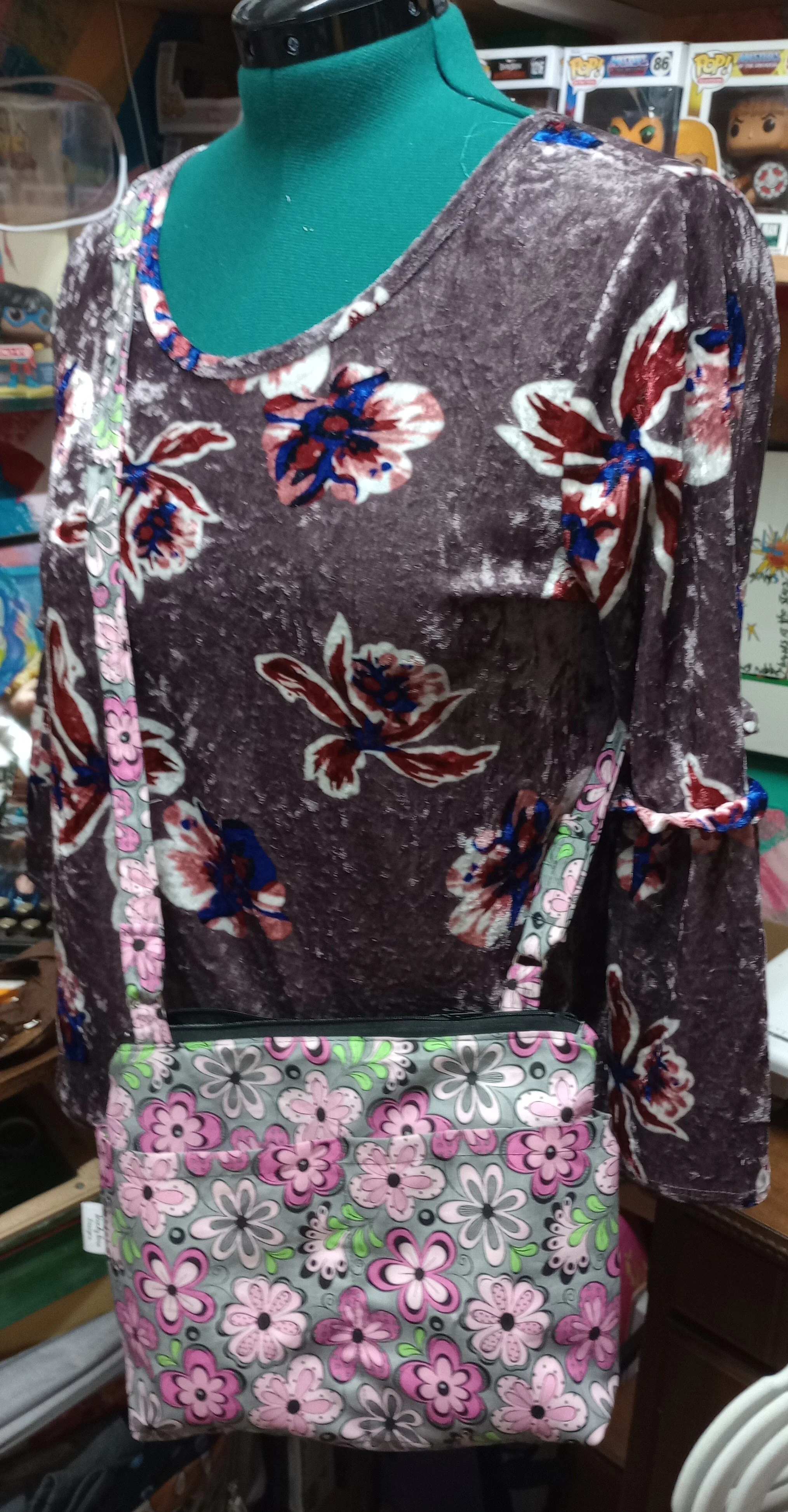 If you are looking for something smaller, our Crossbody bags are just for you! With a big zippered pocket in the center and four open pockets on the outside you can carry all your wallet, car keys, cell phone, even a small water bottle! The possibilities are endless!